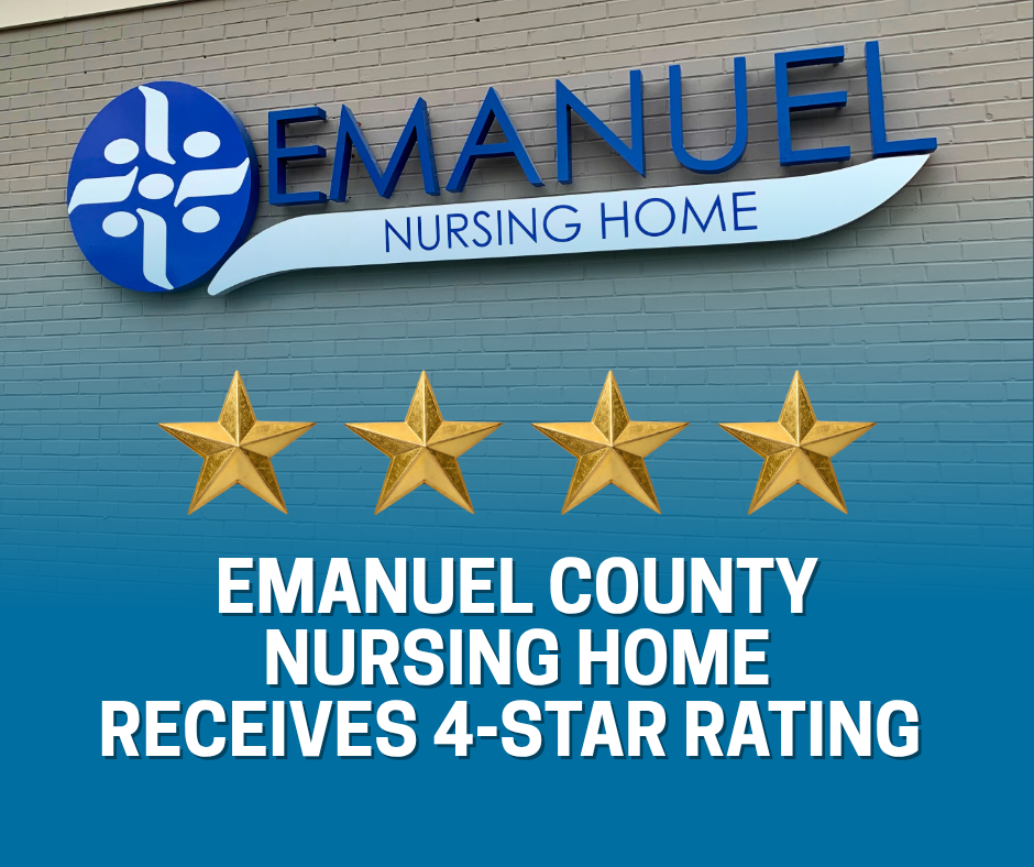 Emanuel County Nursing Home is proud to announce that it has received a 4-star quality rating from the Centers for Medicare & Medicaid Services (CMS), a recognition that reflects the facility’s ongoing commitment to excellence in patient care, safety, and service.